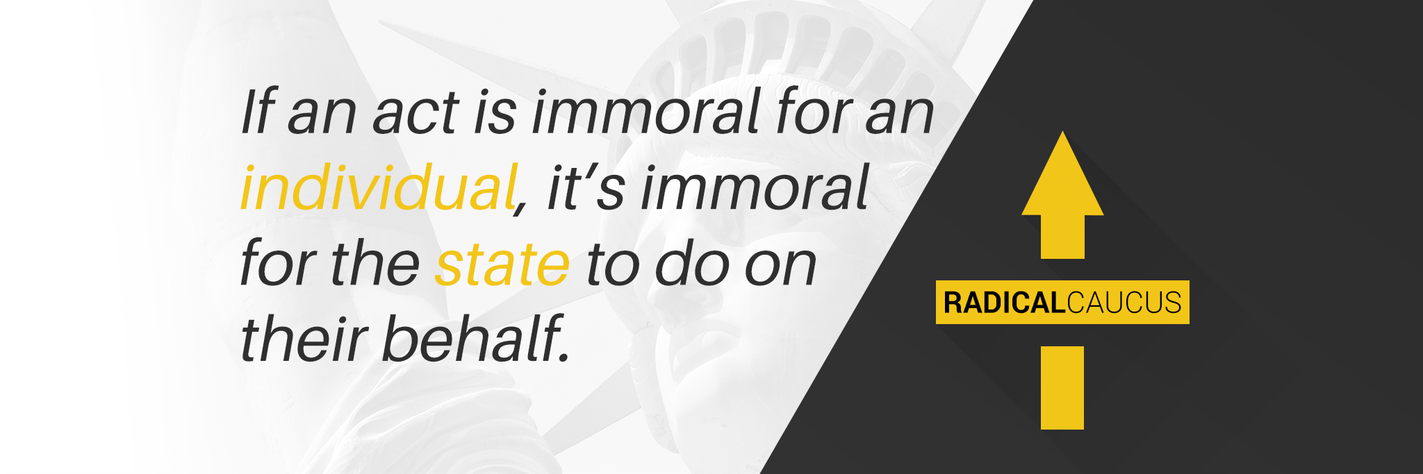 Welcome to the Libertarian Party Radical Caucus! We are a group of self-identified radicals working within the membership of the Libertarian Party (LP) who support the re-radicalization of the LP; and further to promote a clear, radical vision of libertarianism through education and electoral advocacy both within the LP and outside of it.